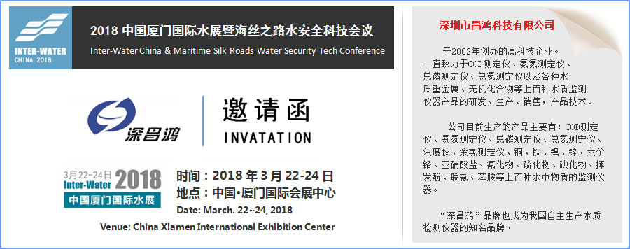 本司將于2018年3月22-24日,攜自主研發生產水質檢測儀器參加“2018中國廈門國際水展暨海絲之路水安全科技會議”。歡迎新老客戶蒞臨參觀指導。