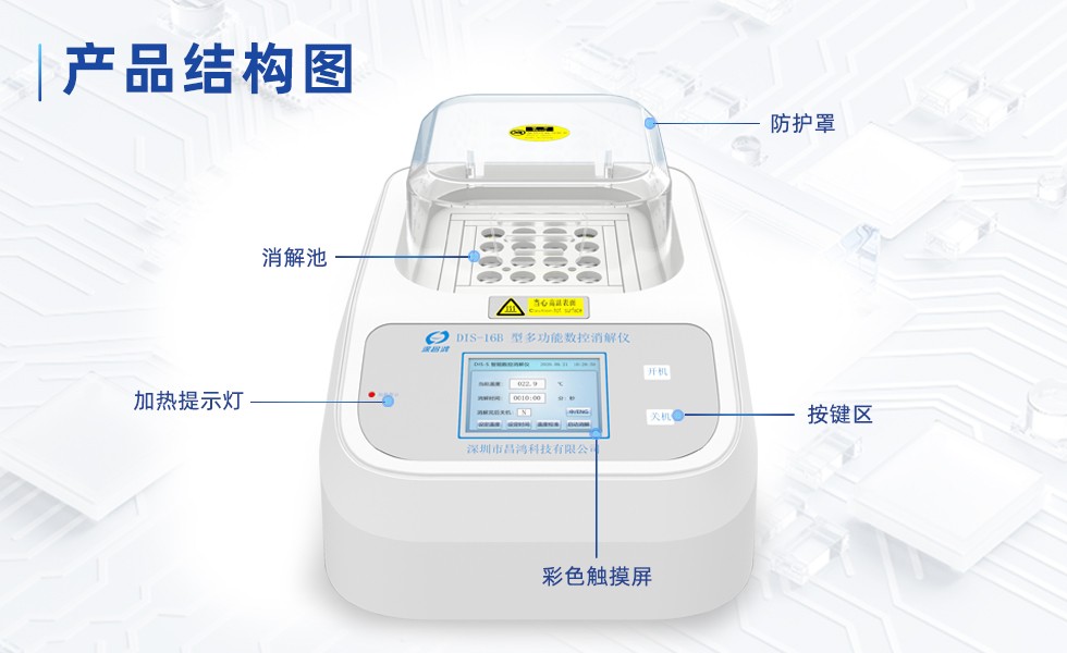 本儀器能實現地表水、工業廢水、生活污水等各種水樣中的COD、總磷、總氮及總鉻等需要加熱過程的化學分析消解功能。可同時放置16個φ16mm的反應管,根據設定的消解溫度和消解時間自動控溫。