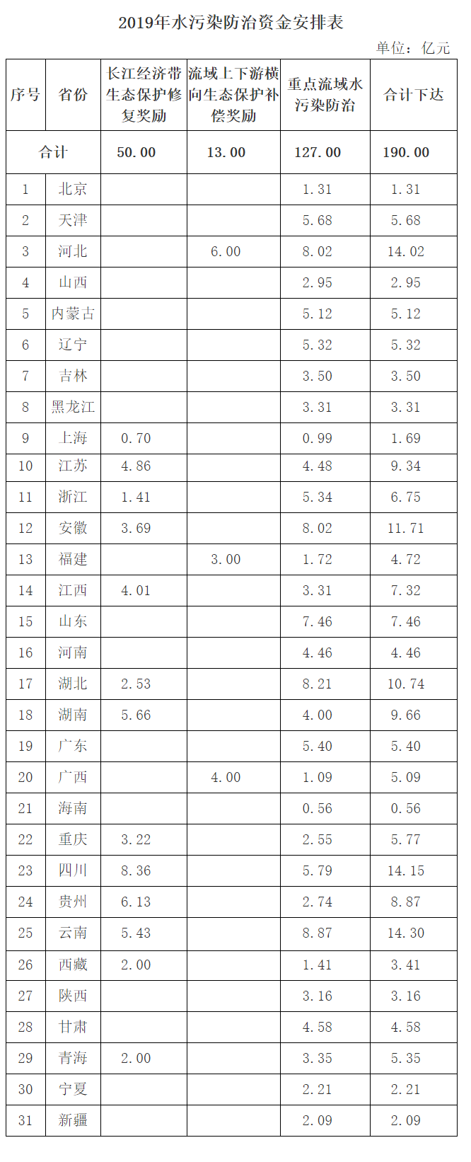 “綠水青山,就是金山銀山”,治理污染,打造生態(tài)綠色中國(guó)刻不容緩。為促進(jìn)大氣質(zhì)量、土壤質(zhì)量、水環(huán)境質(zhì)量改善,打贏污染防治攻堅(jiān)戰(zhàn),近日,財(cái)政部連續(xù)發(fā)布了《財(cái)政部關(guān)于下達(dá)2019年度大氣污染防治資金預(yù)算的通知》、《財(cái)政部關(guān)于下達(dá)2019年度水污染防治資金預(yù)算的通知》、《財(cái)政部關(guān)于下達(dá)2019年土壤污染防治專項(xiàng)資金預(yù)算的通知》三個(gè)文件,公示了2019年的污染防治經(jīng)費(fèi)預(yù)算,合計(jì)490億元。