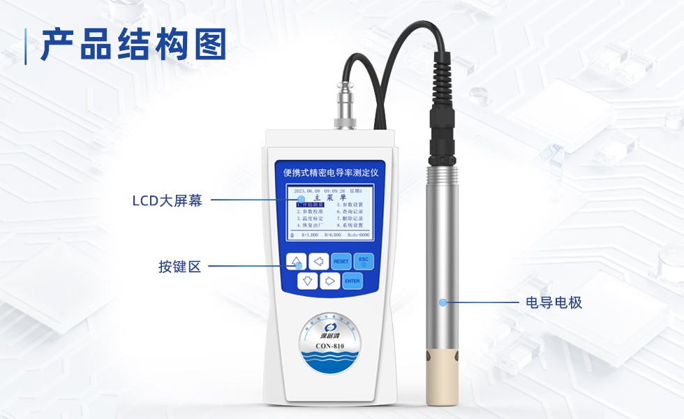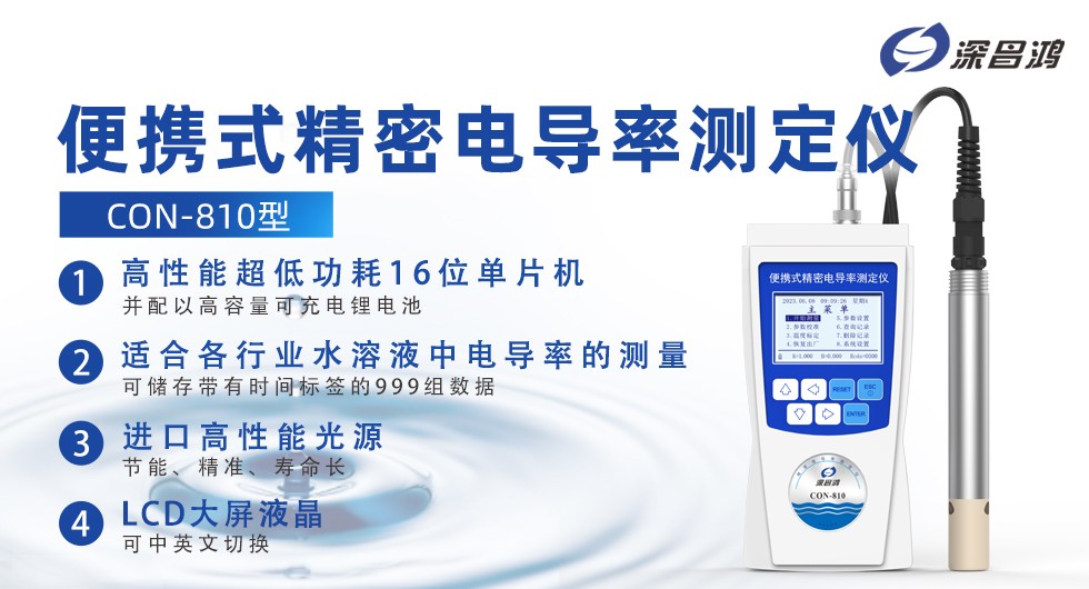 CON-810型型便攜式電導率采用超低功耗單片機測量和控制,采用電極法測量。具有穩定可靠、操作簡單方便、響應速度快等優點;該儀器能以兩種方式表示單位指示測定結果,即電導率(uS/cm或mS/cm)和TDS(mg/L),此外還同時對被測介質的溫度(℃)進行測量顯示。